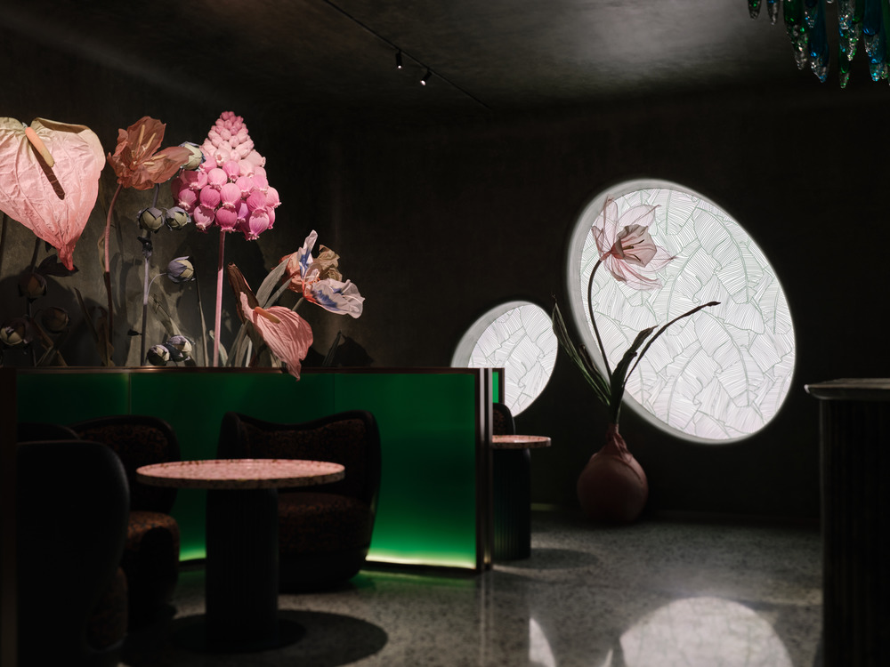 '이상한 나라의 앨리스'라는 이야기에서는 모자장수와 손님들이 정원에서 애프터눈 티를 마시고 있는 모습이 대기 공간이라는 개념에 힘을 실어준다. 손님의 감각은 이미 연극에 몰입되어 있다. 마사지 공간의 흔들리는 반딧불은 매혹적인 꽃들의 더 깊은 미로로 안내한다. 그라데이션 조명은 동굴의 무대 스포트라이트가 된다. 불규칙한 거울은 다시 한번 꿈같은 세계의 환상적인 느낌을 반영한다.